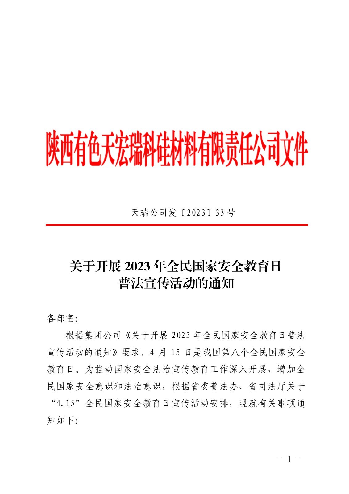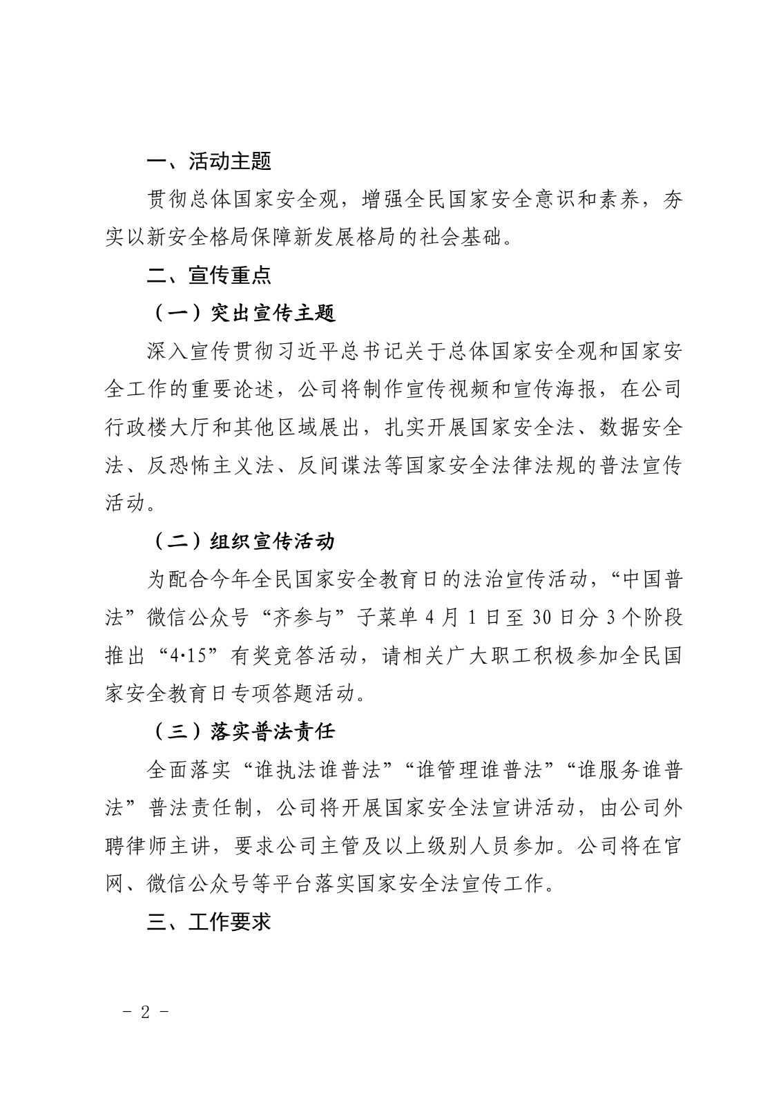 关于开展2023年全民国家安全教育日普法宣传活动的通知